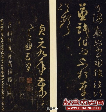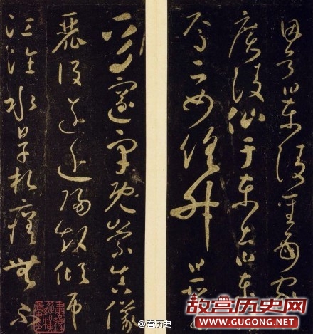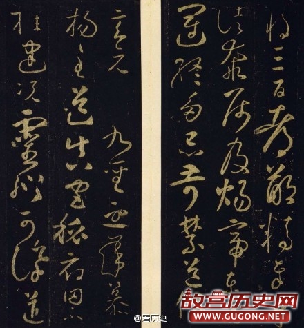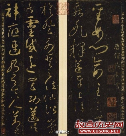 《圣母帖》——怀素晚年的作品,绚烂之极,复归平淡,沉著顿挫,尽脱火气,笔法圆融,应规入矩。《圣母帖》又名《东陵圣母帖》。怀素草书,书于793年(唐贞元九年),碑石刻于1088年(宋元祐三年)。纵70厘米,横139厘米。