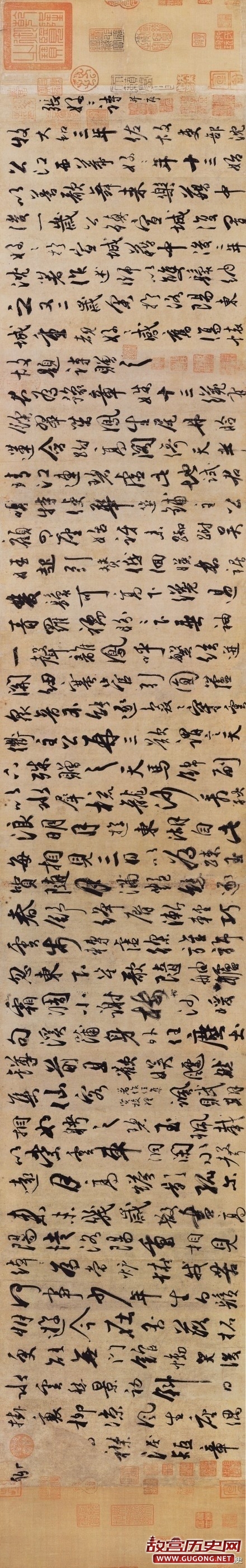 杜牧《张好好诗》,此卷内容为五言古诗书,是为歌妓张好好而作。杜牧较多接触社会下层妇女,了解她们的辛酸遭遇。该卷书用麻纸,叙述歌妓张好好得不幸遭遇和作者“感旧伤怀”。书法雄健姿媚,笔势飞动,深得六朝人遗风,更与其诗文相表里。