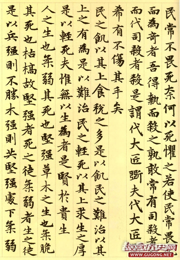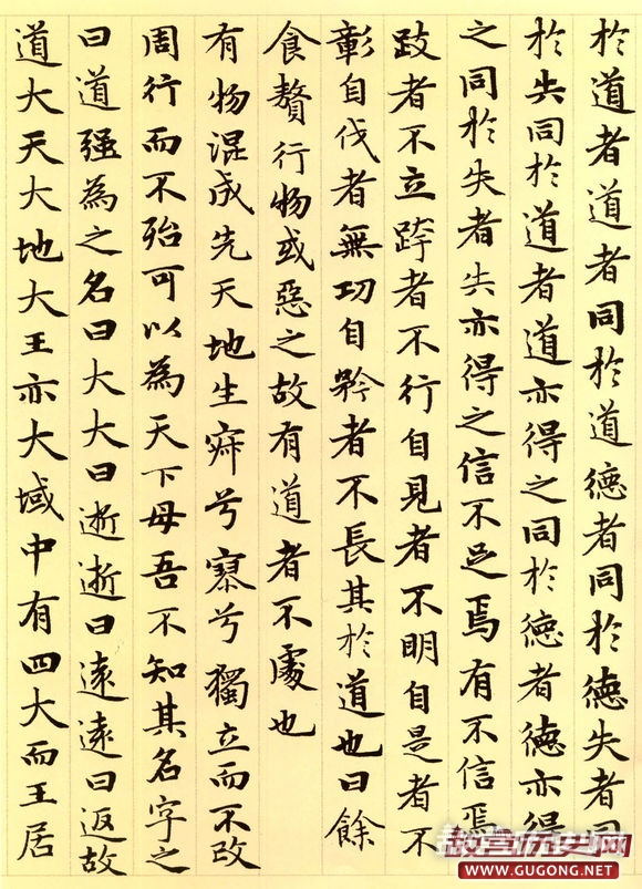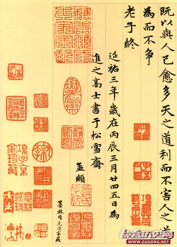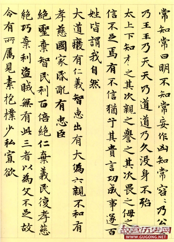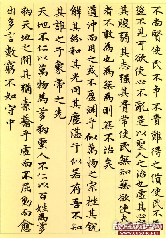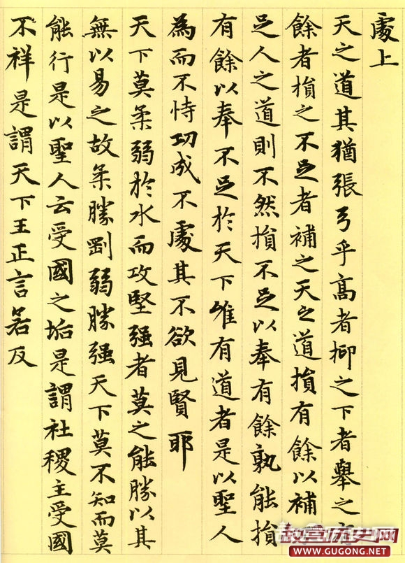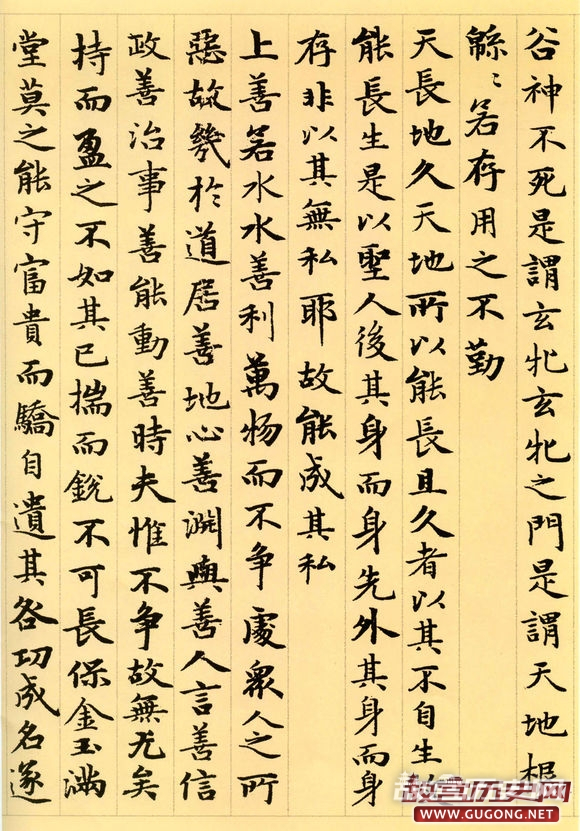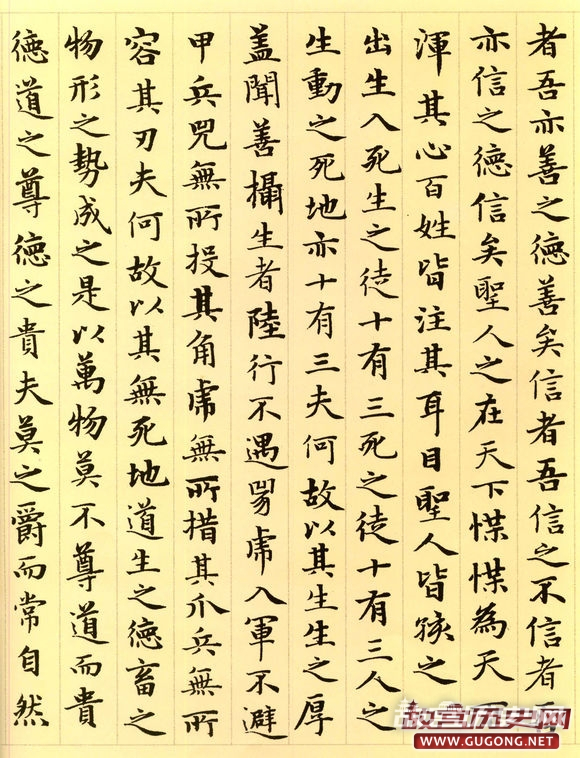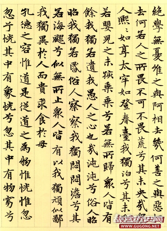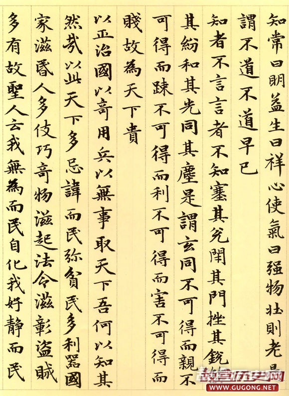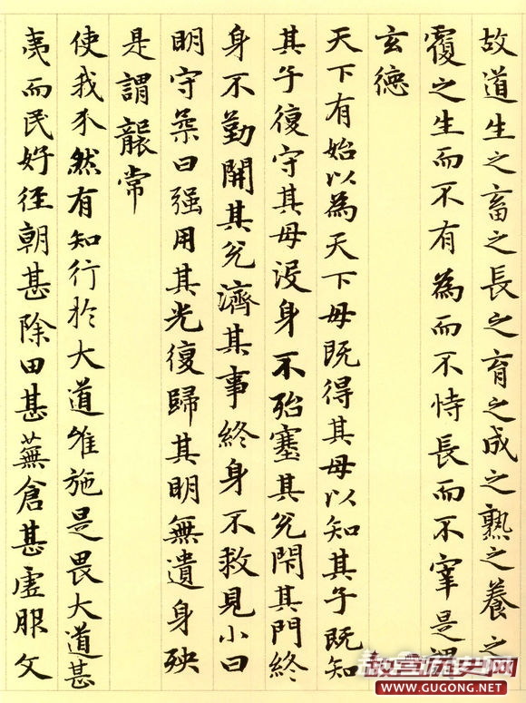 元朝延佑三年三月,六十三岁的赵孟頫为进之高士书写了这卷小楷道德经。卷首,赵氏绘了一幅老子画像,其后便是洋洋洒洒的整卷小楷书道德经。这卷墨迹为纸本,纵二百四十五毫米,横六千一百八十八毫米,现藏于故宫博物院。