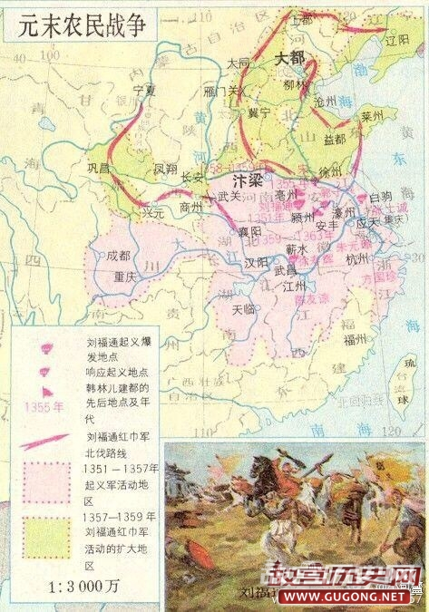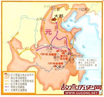 1351年5月28日 刘福通以红巾为号发动起义 史称“红巾起义”