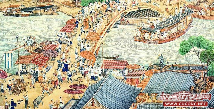 “上河”又是什么意思呢?我认为“上”是方位词。当时开封城市人口近百万,一百多万斤的口粮就靠汴河、蔡河进行漕运,把粮食从苏州等主产区运过来。所以说“苏湖熟,天下足”。这两条河对于汴京的社会生活具有很重要的作用。地图上汴河居北,处上位,故称上河。所以这幅画是描绘清明盛世中上河一段的景色,与上坟扫墓没有直接关系。
