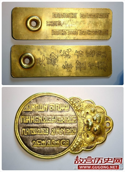 这块圣旨金牌上文字的意思是:至高无上的大元皇帝喻 在长生天的面前发誓,如果谁要对圣旨不服或违背,将被处死。这块圣旨金牌实际上是元朝皇帝给传达圣旨的人的信物。