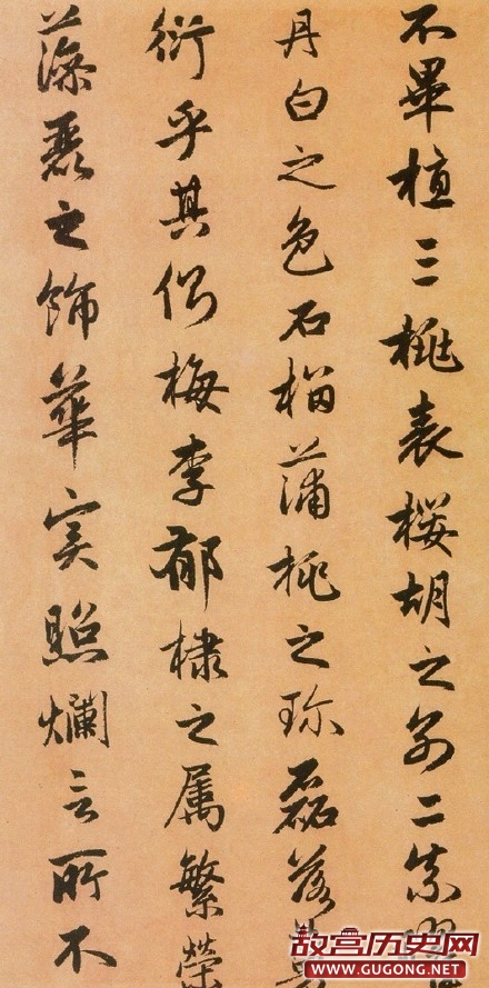 爰定我居,筑室穿池,长杨映沼,芳枳树樆,游鳞瀺灂,菡萏敷披,竹木蓊蔼,灵果参差。张公大谷之梨,溧侯乌椑之柿,周文弱枝之枣,房陵朱仲之李,靡不毕植。三桃表樱胡之别,二柰耀丹白之色,石榴蒲桃之珍,磊落蔓延乎其侧。梅杏郁棣之属,繁荣藻丽之饰,华实照烂,言所不能极也。