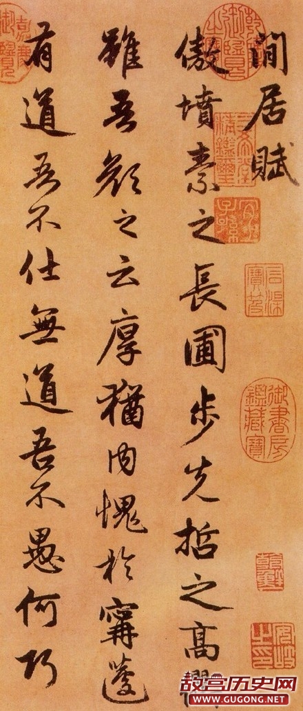 魏国曹植和西晋潘岳都作有《闲居赋》,以潘岳的最负盛名。潘作写于元康六年,是表现其厌倦官场和隐逸情怀的一篇散文。这一年潘岳从长安回京任博士。因母病去官,时年五十岁。作者回顾三十年的宦官生活,仕途沉浮,一时心灰意懒,产生了归隐田园的意念,因而写了这篇《闲居赋》。书法作品以赵孟頫的为著名。