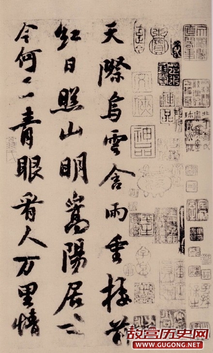 《天际乌云帖》又称《嵩阳帖》,苏轼诗文一章,行书,真迹曾由明代项元汴收藏,清归翁方纲,有翁氏题跋。共三十六行,计三百零七个字。藏处不详。