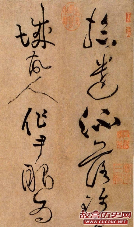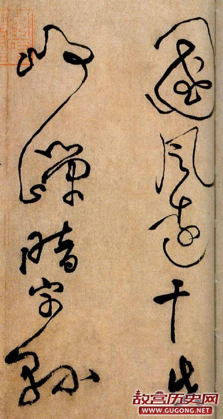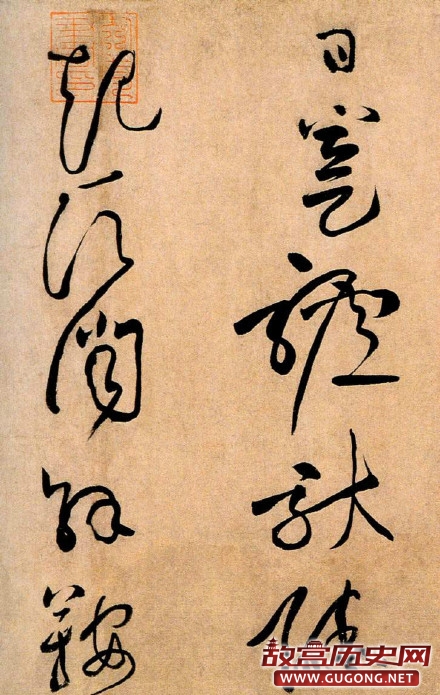 《浣花溪图引》,此诗收入《山谷外集》,作于北宋元祐三年(1088年),黄庭坚时年42岁。作品笔法苍老,多骨少肉,具有作者晚年书法的风格特征。卷后明王世贞跋中评道:“……老杜浣花溪图引也。歌词力欲求奇,然是公最合作语。书笔横逸疏荡,比素师饶姿态,亦稍平易可识。而结法之密、腕力之劲、波险神奇,似小不及也……。”跋文中“素师”是指唐代著名书家怀素,王世贞对黄庭坚与怀素书法特点的比较非常准确。此件作品虽然残处较多,仍不失为佳作。