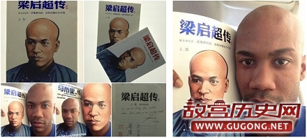 而在今天,马布里又发布了一张被PS过的图片,图片还是以他和《梁启超传》的合影作为模板,只不过两人的脸进行了一个互换。书本封面上的人物被P成了马布里的脸,而原先马布里的脸也被P成了梁启超的脸。有意思的是,PS的作者还将书名也进行了改动,变成了《马布里传》。
