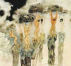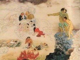 若在世之人,产下一婴儿,无论是何原因,如婴儿天生呆傻,残疾;或是因重男轻女等原因,将婴儿溺死,抛弃。这种人死后打入石压地狱。为一方形大石池(槽),上用绳索吊一与之大小相同的巨石,将人放入池中,用斧砍断绳索...