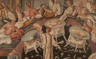 古罗马食客每吃完一餐就用羽毛挠嗓子眼儿催吐,以便清空肠胃继续大吃。他们甚至有专门用来呕吐的碗,但大多数人还是喜欢直接吐在地板上。他们吐出来的东西也是美食,比如浇了蜂蜜的睡鼠,那是古罗马人热衷的食物。哲学家塞内卡(公元前3年—公元65年)对此有一个精妙的描写:“罗马人呕吐是为了进食,进食是为了呕吐。”