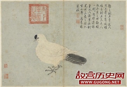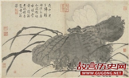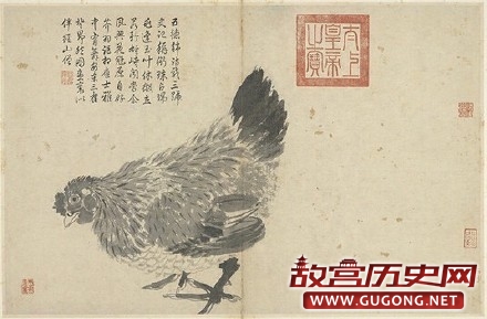 沈周的写意画风影响后世深远,《写生册》正是一重要例证。此册分别描绘花果、家禽、猫、驴等日常所见之物,计十六开。前副叶篆书题写“观物之生”四字,虽无书者款印,但从书风特色观察,推测是沈周好友李应祯所书。