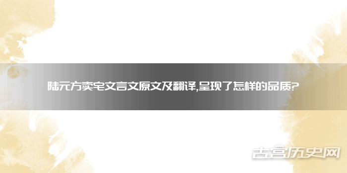 我们国家是世界上四大文明古国之一,拥有着悠久的历史,是唯一一个历史上未曾中断过的国家。在悠久历史和文化中,包含着大量的历史事件、故事、人物和文化,这些都是宝贵文化遗产。今天,想要为您讲述的是陆元方卖宅文言文原文及翻译,呈现了怎样的品质?的相关内容。
