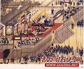 从三月一日开始,自紫禁城北门神武门经西直门,到北京西郊御园的畅春园,沿途30余里长的御街,平整如镜,装饰一新。街道按照统一尺寸和规格进行修整,路上铺满细软的黄沙。街巷两边,分别搭建了50段的龙棚、经棚——从神武门到西直门分成31段,从西直门到畅春园共19段。龙棚、经棚、门楼、茶坊、书肆等等,都是朱漆彩绘,上面装饰着无数的万字、寿字、福字形的花纹、图案、棚门、楼门上都悬挂着吉祥对联、彩幡飘扬,旌旗猎猎,满城莺歌燕舞。