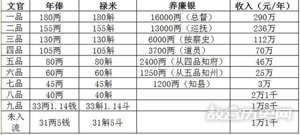 大清朝官员的工资叫俸禄,之所以叫俸禄肯定是有一层含义在里面的,俸禄包括俸银和禄米,按照官员不同的官职品级分为八种,清朝官员的工资并不想现在按月发放,而是分为两季,春天一季和秋天一季。清朝是中国古代官员工资最低的一个朝代,跟宋朝定的工资简直就是没法比,按照清朝一品文官年俸银才180两,一两折合现在两三百元,这样算一年工资才三五万元,根本不可能养活家人,另外清朝还有一个坑爹的制度,就是官员在官衙里请的师爷之类的人,政府是不发放工资的,官府所有的开销都要让领国家工资的官员负责,这样一来不仅养活不了自己家人,连办差的人也养活不了,这岂不是逼着清朝官员去贪污吗?