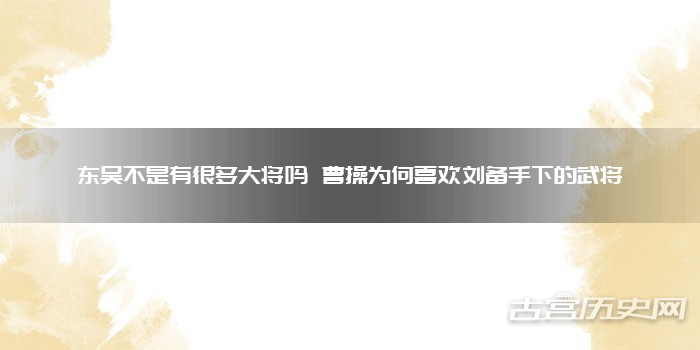 中国作为四大文明古国唯一没有中断过的国家,历史是非常悠久的,这其中的历史事件、故事、人物和文化也是非常多,那么今天小编就为大家讲讲关于东吴不是有很多大将吗 曹操为何喜欢刘备手下的武将这一内容。