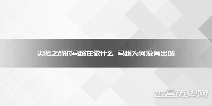 中国作为四大文明古国唯一没有中断过的国家,历史是非常悠久的,这其中的历史事件、故事、人物和文化也是非常多,那么今天小编就为大家讲讲关于夷陵之战时马超在做什么 马超为何没有出战这一内容。