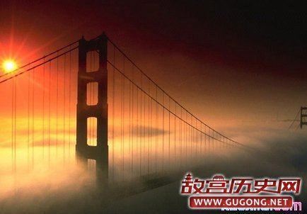 1579年英国探险家FrancisDrake发现了连结太平洋和旧金山的一个海峡,这就是后来的金门。尽管这个名字在1849年的淘金潮以前早就使用,但淘金潮使得金门(进入北California的入口)成了加利福尼亚神秘魅力不可缺少的一部分。早在1872年就讨论过要在金门海峡修建一座大桥的想法,但是直到1937年才在海峡上修了一座悬索桥。金门大桥横跨南北,将旧金山市与Marin县连结起来。花费四年多时间修建的这座桥是世界上最漂亮的结构之一。它已不是世界上最长的悬索桥,但它却是最著名的。金门大桥的巨大桥塔高227米,每根钢 索重6412公吨,由27000根钢丝绞成。1933年1月始建,1937年5月首次建成通车。