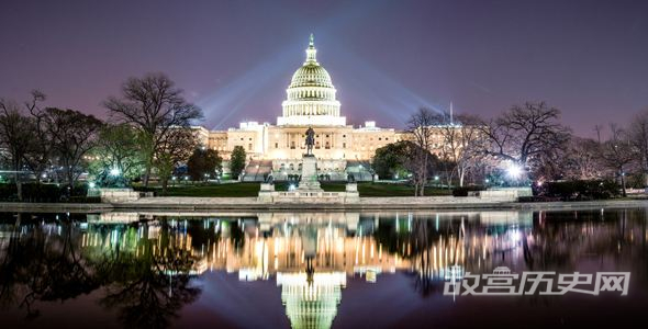编者按:华盛顿是美国的政治中心,白宫、国会、最高法院以及绝大多数政府机构均设在这里。国会大厦(右图)建在被称为“国会山”的全城最高点上,它是华盛顿的象征。
