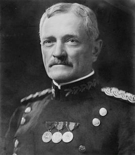 1919年晋升为陆军五星上将,是美军历史上第一位五星上将。1886年毕业于美国西点军校。1904——1905年任驻日本武官,1916——1917年率领1.2万名美军出兵墨西哥。1917年美国参加第一次世界大战后,担任美国驻欧洲远征军司令,跨洲渡洋,成为大战中的美军英雄。大战最后阶段,参加了圣米耶勒和马斯——阿贡讷战役。1921年任陆军参谋长,1924年退役。