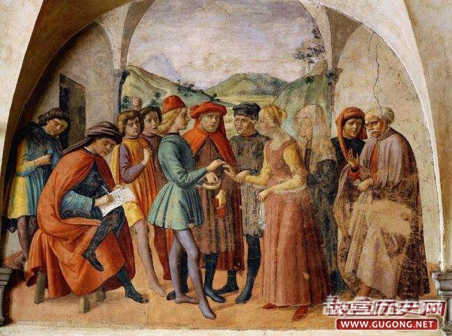 多梅尼哥·基尔兰达约《新娘的嫁妆》新郎为新娘戴戒指