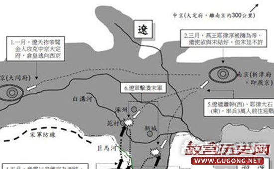 后来辽国乘着宋朝转向守势的时候,开始发兵大举进攻宋朝。据说,在辽朝准备大举南征的时候,还经常停问细务,专治甲兵,对准备工作也做的十分细致。
