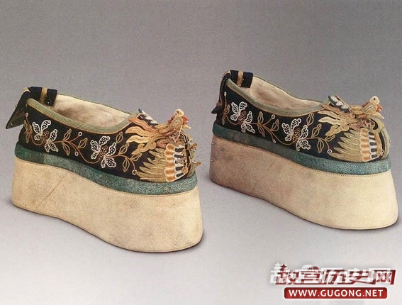 清朝统治者对女子缠足极其反感,禁止满族妇女缠足。满族妇女也有属于本民族风格的“高跟鞋”,“八旗妇人履底厚三四寸,圆其前,外衣通长掩足”,其形制是鞋底中间高出数寸,中微细,也叫“高底鞋”。