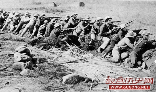 1899年秋,英国开始在两个布尔族共和国边境附近集结军队。为防止英国入侵,布 尔人于1899年10月11日对英宣战,并展开军事行动。布尔军队采用民兵制补充兵员,凡 年满16至60岁的男子均需携带马匹、步枪、备用子弹和粮食到集合地点报到;经济困难 的,由公家发给武器装备。两个布尔族共和国建立了一支人数为4万至4.5万的联军, 装备有从德国购买的步枪(主要是“毛瑟”枪)、40挺机枪和80门速射炮。联军由懦贝 尔将军指挥。布尔军队士气高昂,纪律严明。到战争开始时,英军约有3万人,它采用 募兵制补充兵员,武器陈旧,训练很差,纪律松弛,因此在战争初期多次被布尔军队打 败。1899年10月,布尔军队攻克了纽卡斯尔和格论科两个城市,包围了莱迪史密斯、马 弗京和金伯利。
