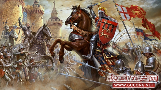 休战条约的缔结,为双方加强战争准备提供了时间。1345年6月,英王爱德华派遣埃克吕斯海战的勇将亨利率军进攻法国南方的阿基坦。腓力六世闻讯,命太子诺曼底公爵约翰率诺曼底等北方军队前往阿基坦抗敌。于是,法国北方各省防务出现真空。7月,爱德华三世和“黑太子”率英军主力从朴茨茅斯出发,渡过英吉利海峡在诺曼底登陆,在对该地实行一番劫掠和蹂躏后,分三路经卡昂、普瓦西向巴黎推进,继而北渡塞纳河和索姆河,8月26日在阿布维尔以北与法军展开克雷西会战。英军占据有利地形,以长弓为主要杀伤武器;法军墨守陈旧战术,主要靠骑士横冲直撞,结果大败,损失惨重。第二年8月,英军占领战略重镇加来,加来也因此成为纯粹的英国人的港埠。克雷西会战,使英格兰变成一个军事强国,英国在欧洲的国际地位空前提高。与此相反,法兰西国势受到严重损害,从此长期陷入困境。