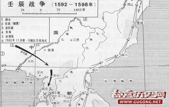 日本侵略者是1592 年入侵朝鲜的,这一年是壬辰年,所以,朝鲜历史上称这次为期6 年的反侵略战争为壬辰卫国战争。
