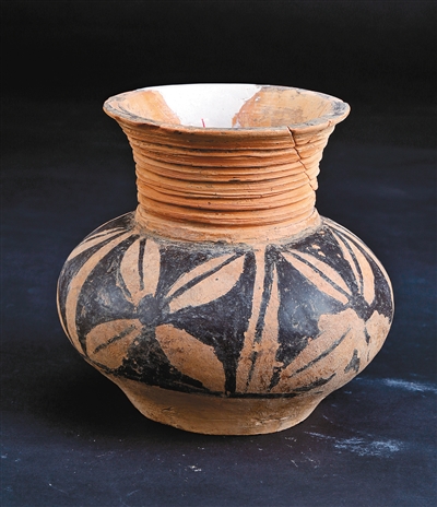 墓葬中出土的彩陶壶 首席记者张宇明 通讯员杨利平 摄